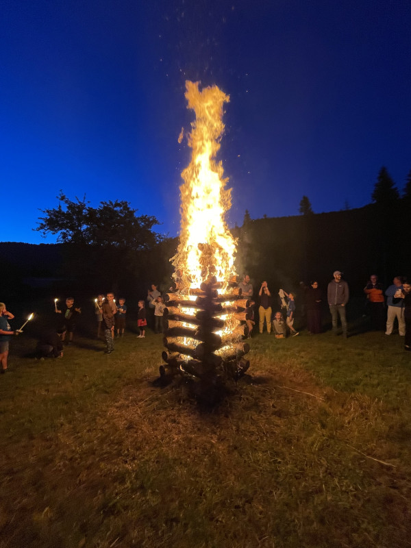 Bei Einbruch der Dunkelheit wird nach dem Fackelzug mit den Kindern in Begleitung ihrer Eltern das Sonnwendfeuer entzündet.